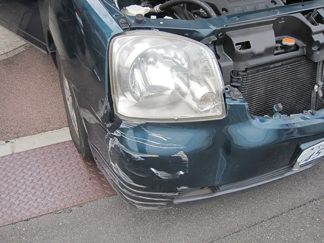 前周りの事故で、内部損傷が酷いです。ディーラーだと案の定「パーツ交換で30万円以上」の修理見積もりになったとのこと。おちらのバンパーをなんとか板金塗装のみで修理して10万円以内で費用を抑えることが出来ました!