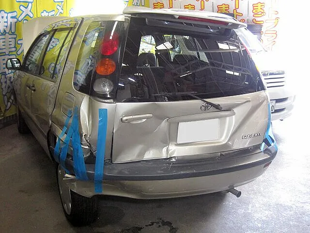 高槻市のS様より、リアゲート・リアバンパーのへこみ修理依頼です。