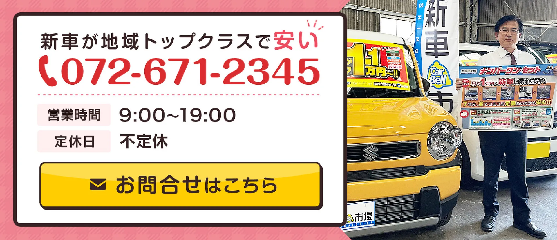 電話番号は072-671-2345まで「ホームページの新車ニッサン・セレナの件で」とお電話下さい。