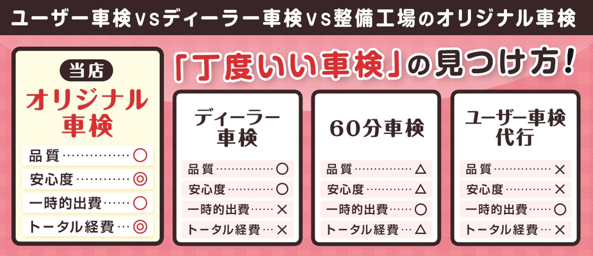 そんなお客様からのご相談をうけて、他社にはないオリジナルの車検をつくりました。