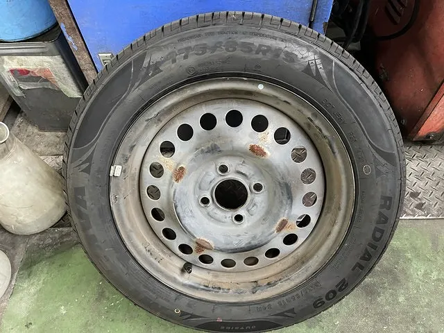 また、長く乗っている車のためタイヤだけでなく、ホイールのサビつきも気になっているとのこと。そこで今回はホイールとセットでの交換で、お安くさせていただくことになりました。当社はお客様のご予算・ご要望に合わせて臨機応変な対応が得意なので、お気軽に何でもお伝えください。