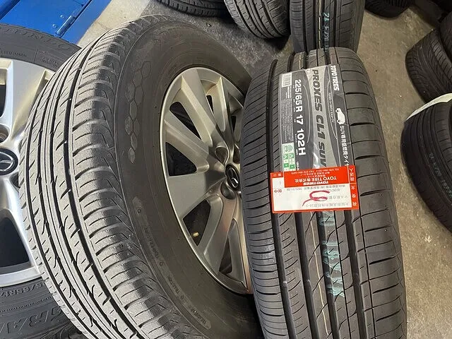 CX-5には、SUV専用の国産タイヤの中でも価格がお手頃な「トーヨータイヤ PROXES CL1 SUV」というタイヤがあります。今回は「費用を抑えたい」とのご要望だったので、こちらのタイヤに交換させていただきました。サイズは、225/65R17 102Hになります。トーヨータイヤの「PROXES CL1 SUV」は、上質な静粛性・室内空間を楽しめるSUV専用低燃費タイヤです。