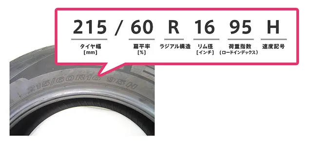 ご自身のタイヤの相場を確認するときにご活用ください。画像にある「215/60R16」までの数字でも結構です。もちろんタイヤサイズが分からない方は、そのままご来店いただいても大丈夫です。