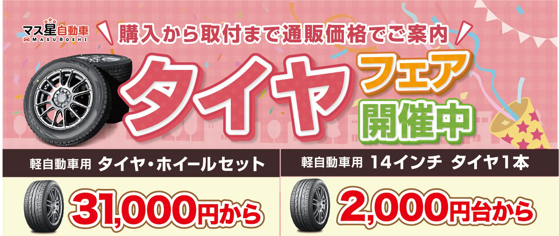 大阪の北摂地域で激安・格安のタイヤ交換・タイヤ組み換え・タイヤ調整なら、マス星自動車にお任せください。