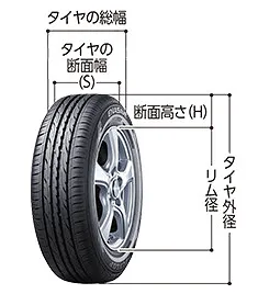 偏平率とは、タイヤの断面幅(S)に対する断面高さ(H)の比率を表す数値です。